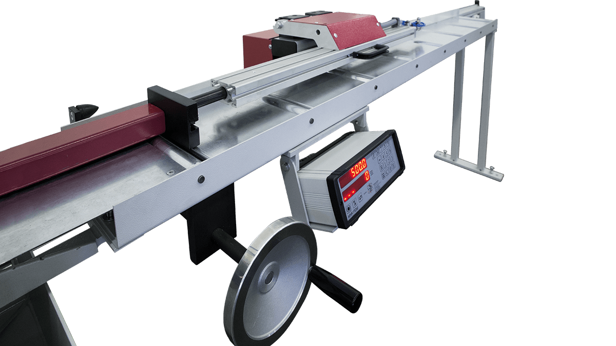 - Once in position, the measuring stop is pneumatically clamped to prevent displacement of the measuring length