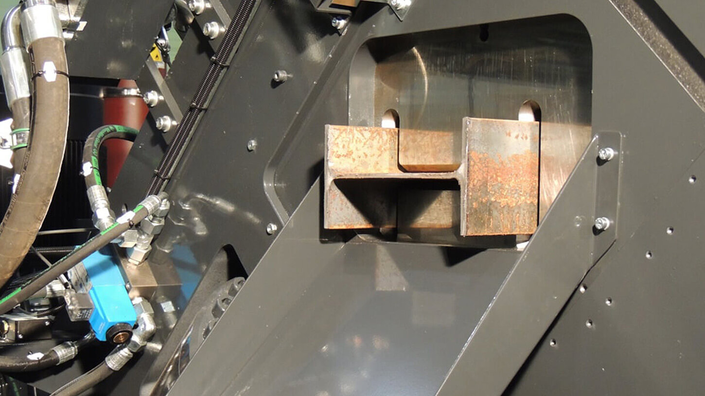 Up to 60% faster than a traditional drilling machine thanks to the additional X-stroke of 19.6 in on the 3 drilling units: thus, simultaneous drilling is possible on the flanges and in the web at different positions, as well as machining in hidden time during sawing (according to part drawings). Spindle speed up to 4000 rpm combined with high torque for high performance carbide drilling up to 2 in diameter.