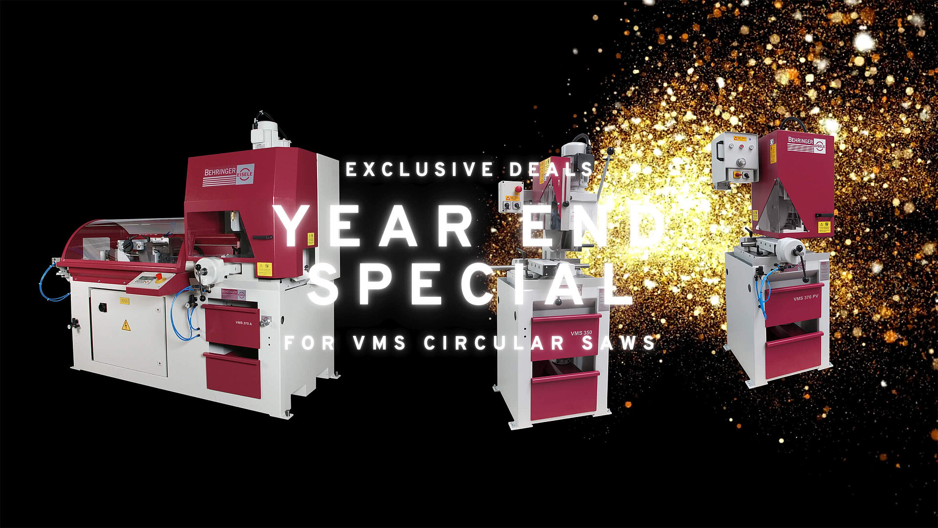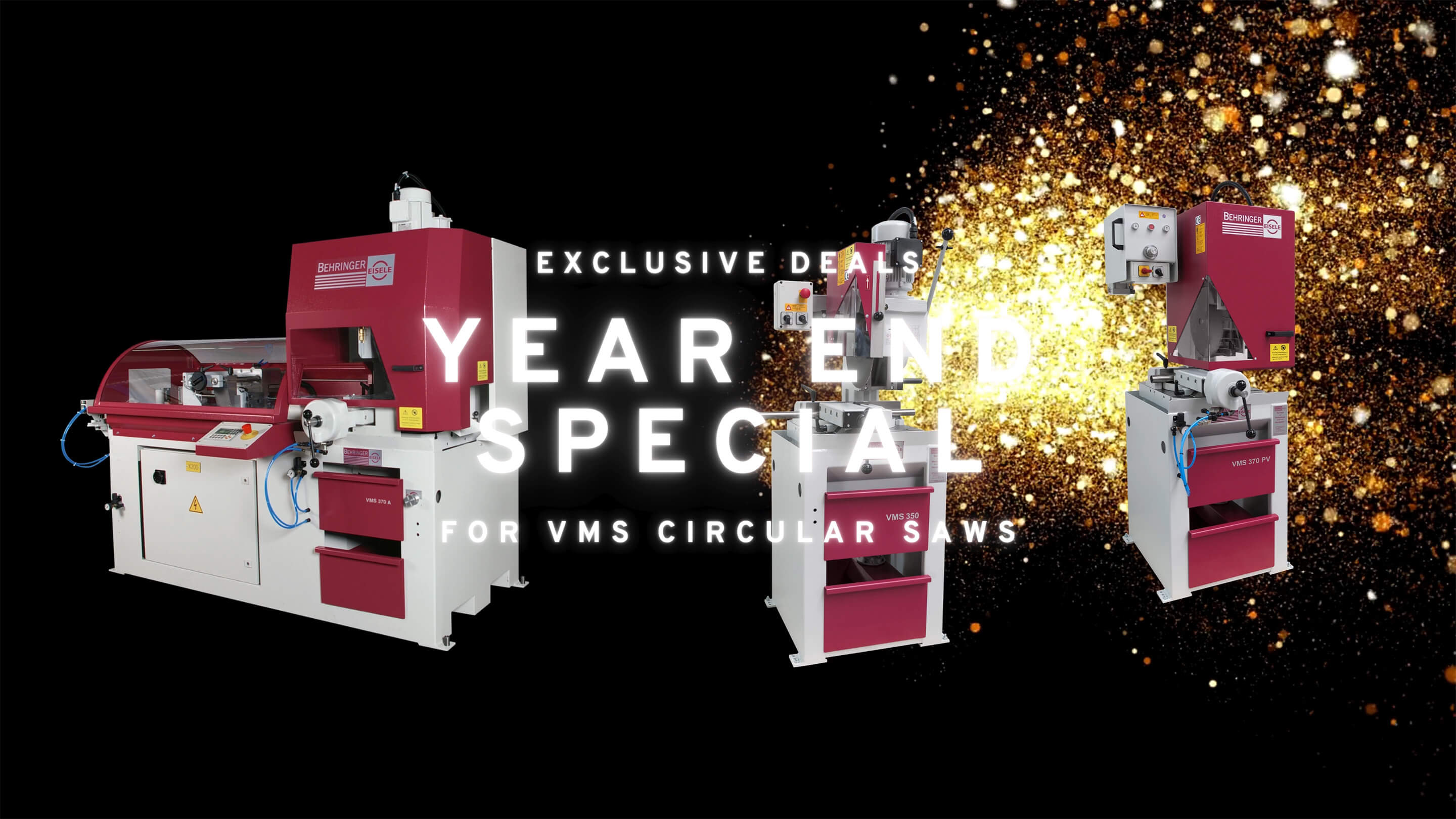 Welcome to Behringer Black Weeks - your chance to elevate your metal cutting performance! Purchase or replace your current saw with one of our powerful VMS models - VMS 350, VMS 350 PV, VMS 370, VMS 370 PV, VMS 400 H, VMS 370 A or VMS 400 A - and receive a free initial equipment package tailored for steel cutting.
